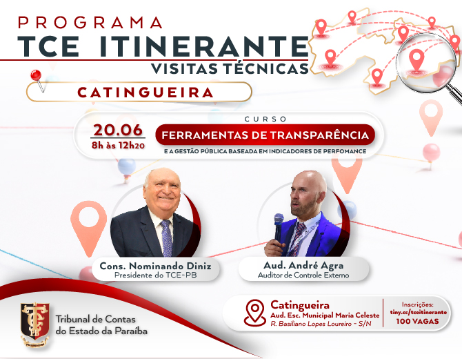 Tribunal de Contas do Estado, promove curso Ferramentas e Transparência na cidade de Catingueira, no sertão paraibano, amanhã dia 20 de junho
