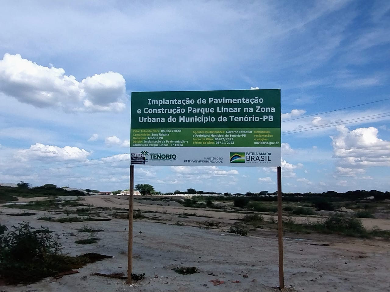 Prefeito de Tenório aguarda liberação de verba, para dar continuidade à segunda etapa do Parque Linear